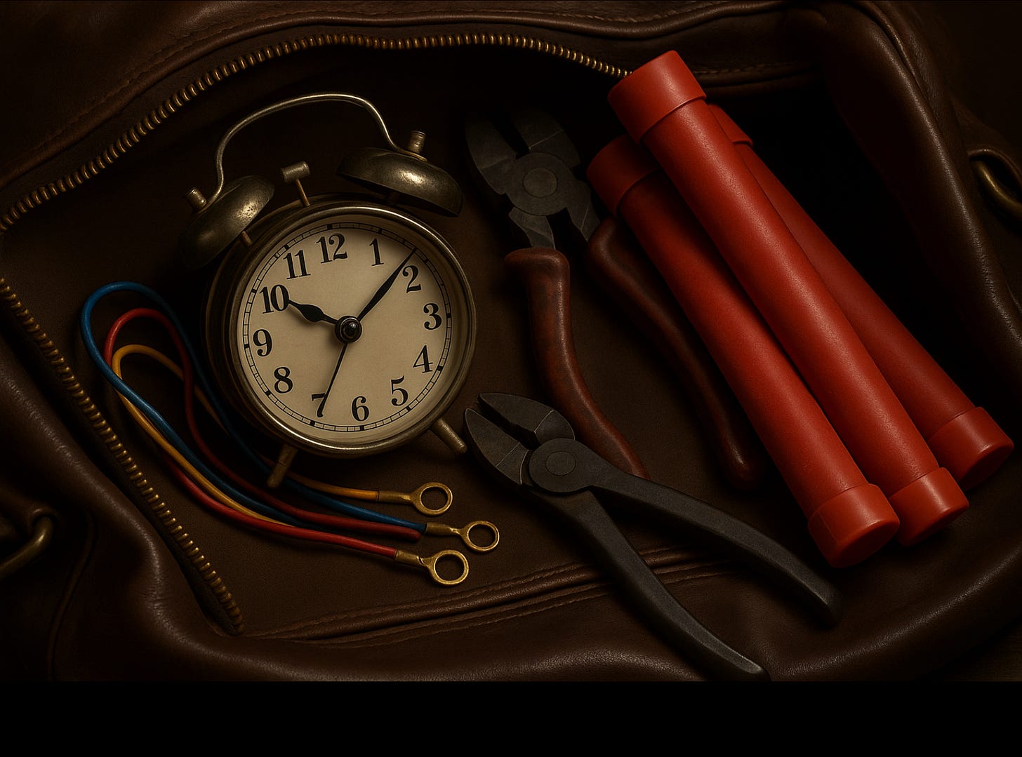 Imagine you’re sitting on a bench, enjoying a sunny day, when a stranger handcuffs your wrist to a duffel bag containing three sticks of dynamite wired to an alarm clock.